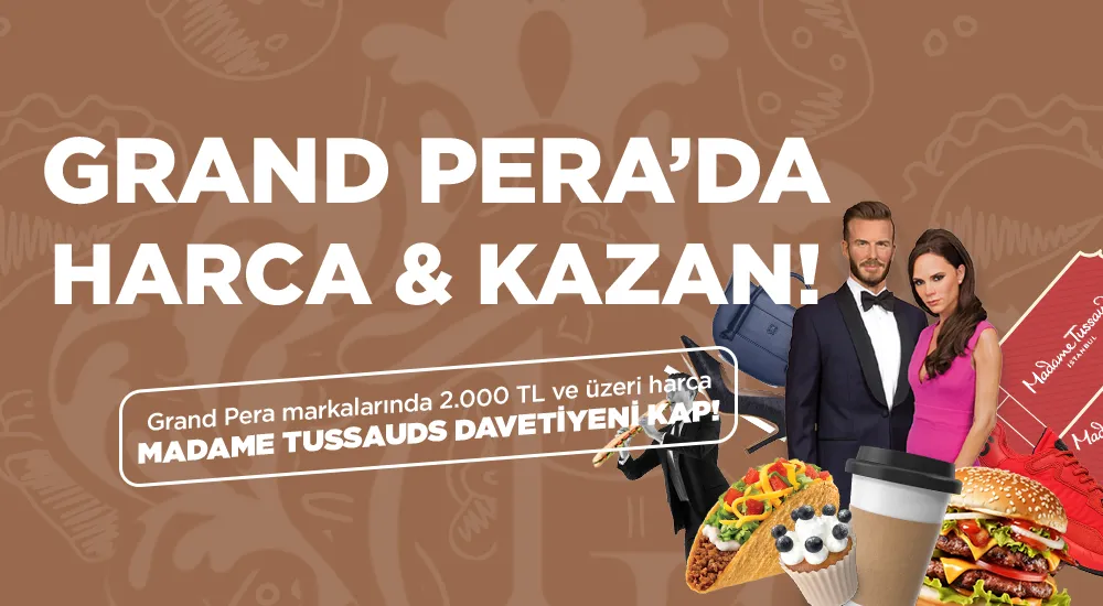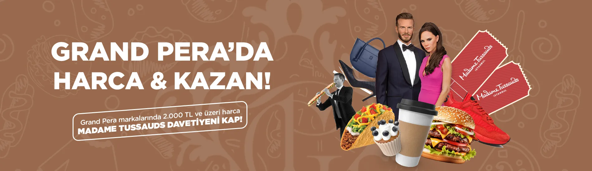 Kampanyaya katılan Grand Pera markalarında, aynı günde, tek seferde yapılacak 2.000 TL ve üzeri alışveriş karşılığında 1 adet MADAME TUSSAUDS İSTANBUL davetiyesi kazanılacaktır.